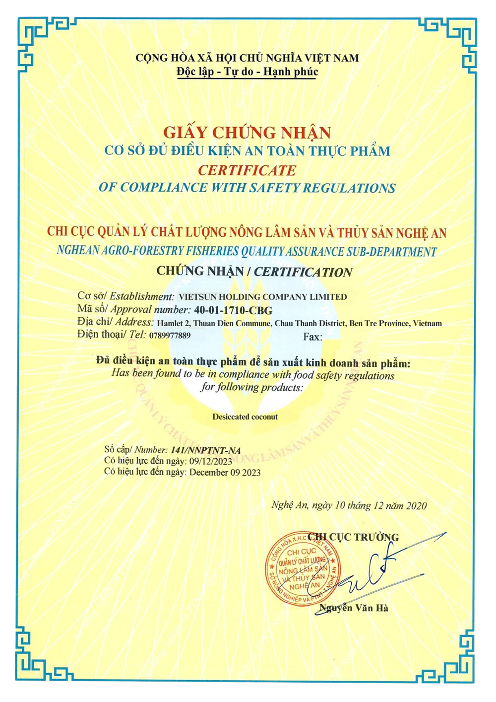 شهادة الالتزام بلوائح السلامة – Certificate of Compliance with Safety Regulations